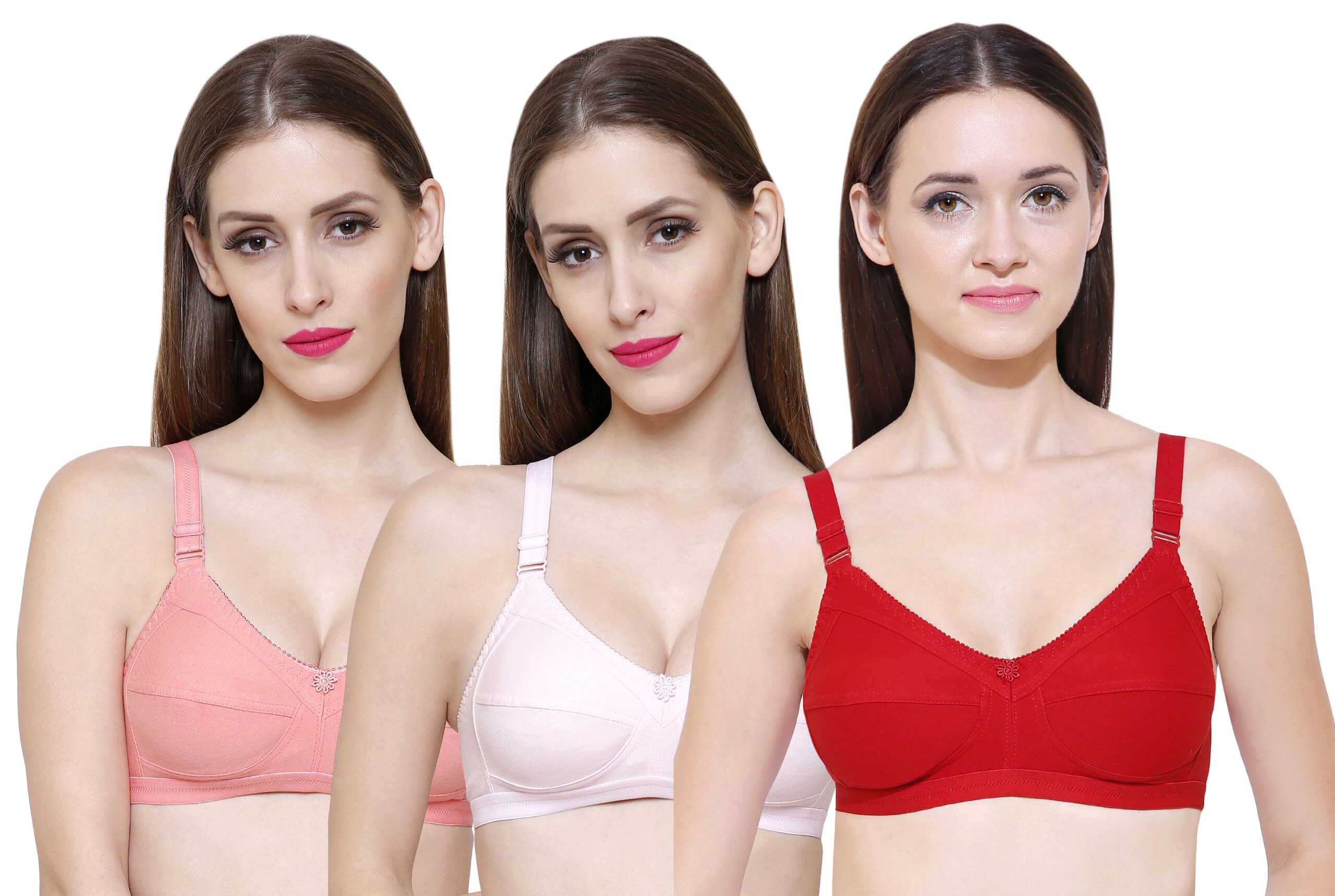 Red Pink Peach Full Coverage Bra Value Pack of 3 – Everyday Comfort and Support