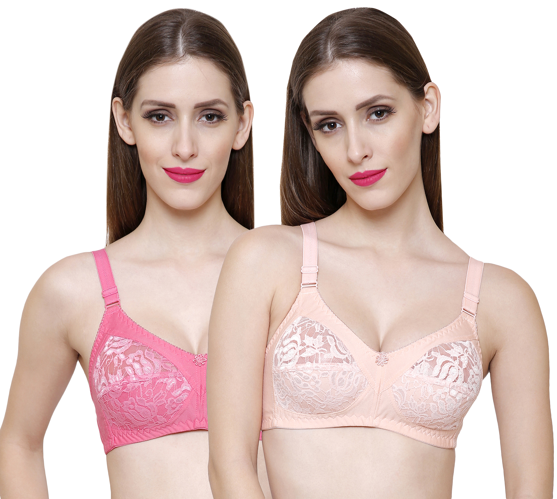 • Combo pack of 2 lace-net bras in Rose & Peach